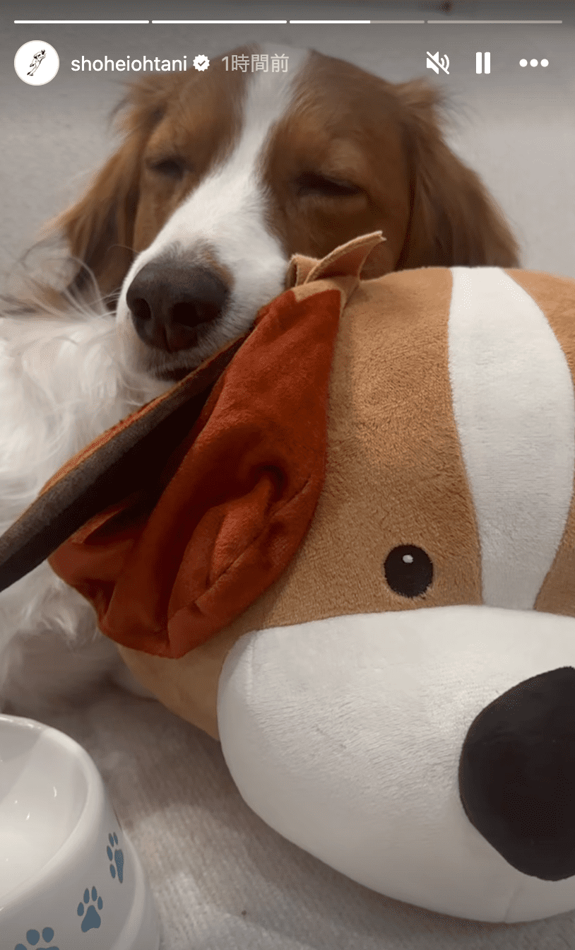 ドジャースの大谷翔平が7日、インスタグラムのストーリーを更新した。【画像】MVP大谷翔平を差し置いて⁉デコピンが大胆カメ…