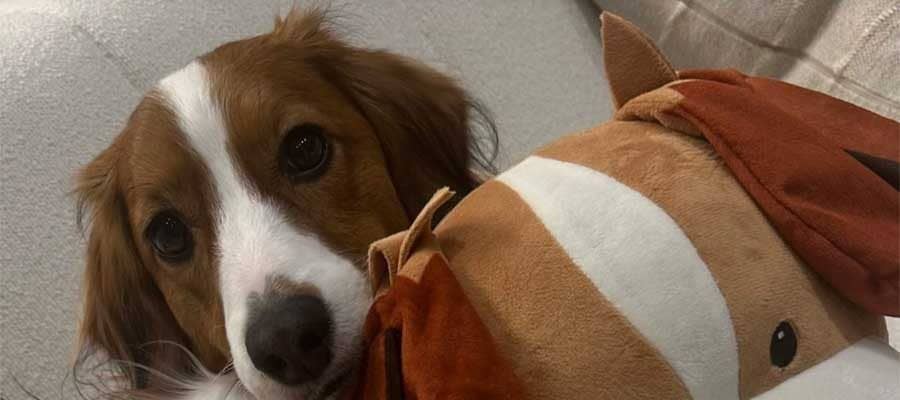 自身のインスタグラムで愛犬とKONAMIのぬいぐるみを投稿