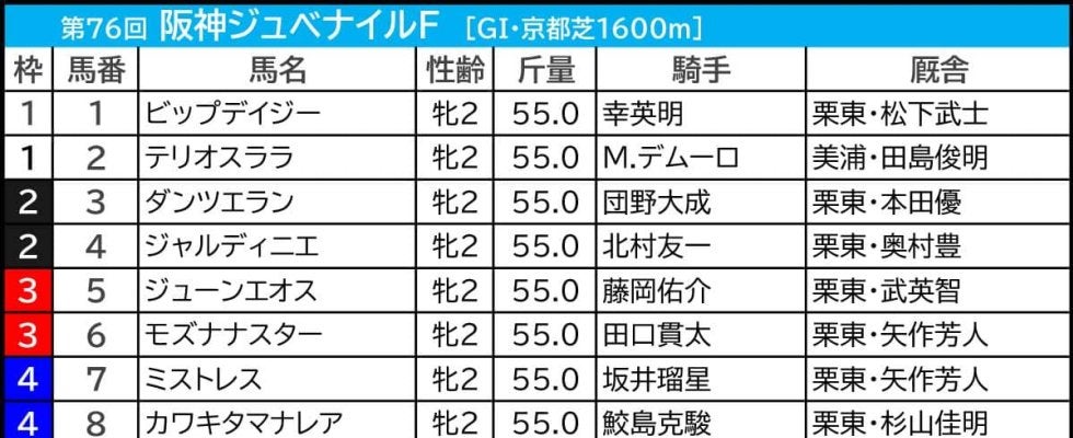 JRAは7日、第76回阪神ジュベナイルフィリーズ(GI、芝1600m)の前日最終オッズを発表した。