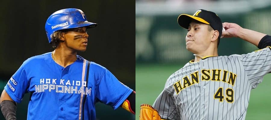 日本ハム・水谷瞬(左)と阪神・大竹耕太郎【写真:矢口亨】