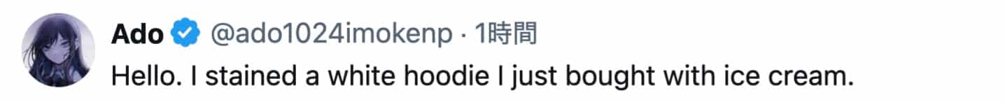 Ado、新しい白いパーカーをアイスクリームで汚す!「Hello. I stained a white hoodie」 | 話題の投稿
