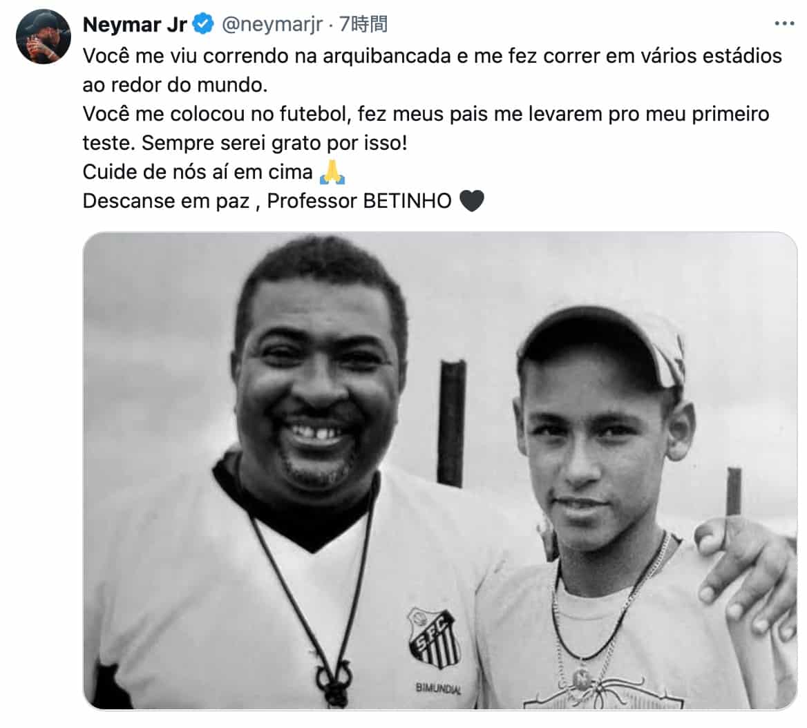 ネイマール、恩師ベッチーニョ氏に感謝と追悼「サッカーの道を開いてくれた」 | 話題の投稿