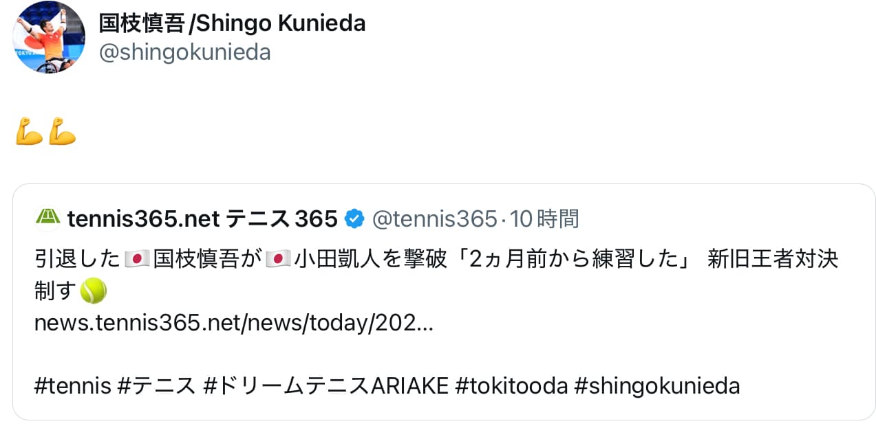国枝慎吾 新旧王者対決を制す!!小田凱人に勝利! | 話題の投稿