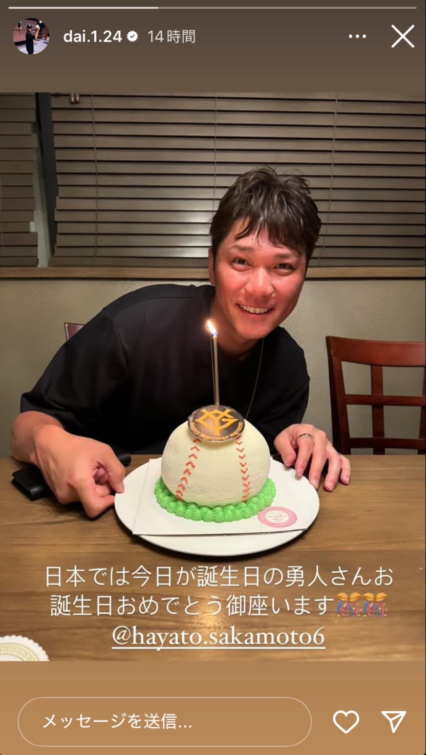 「日本では今日が誕生日の勇人さんお誕生日おめでとう御座います」と綴り、写真を投稿。巨人の坂本勇人がこの日36歳の誕生日を迎えた。