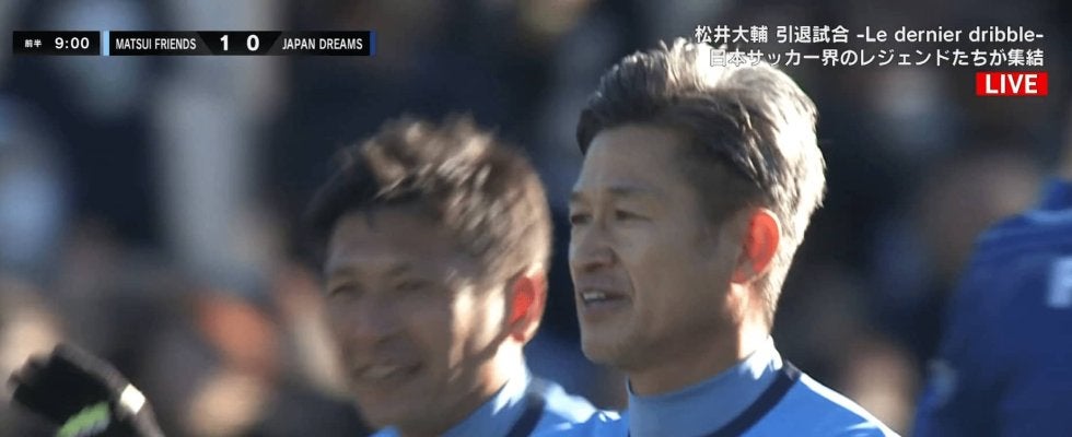 「かっこよすぎる」57歳キングカズが魅せた! 2ゴールに絡んで松井大輔・引退試合を盛り上げる「オーラがすごい」「すごい動けるね」 | ABEMA