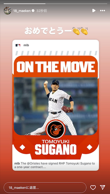 前田健太 (18_maeken) のインスタグラムのストーリーより