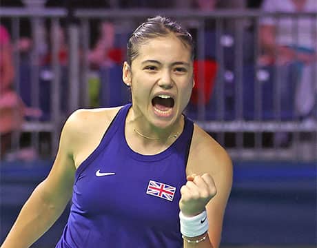 一方22歳のラドゥカヌは2021年、予選から勝ち上がり18歳の若さで全米オープン(アメリカ/ニューヨーク、ハード、グランドスラム)で優勝。2022年には自己最高の世界ランク10位を記録するも、2023年に両手と足首を手術し数ヵ月の間ツアーを離脱。全米オープン優勝以来ツアータイトル獲得からは遠ざかっている。