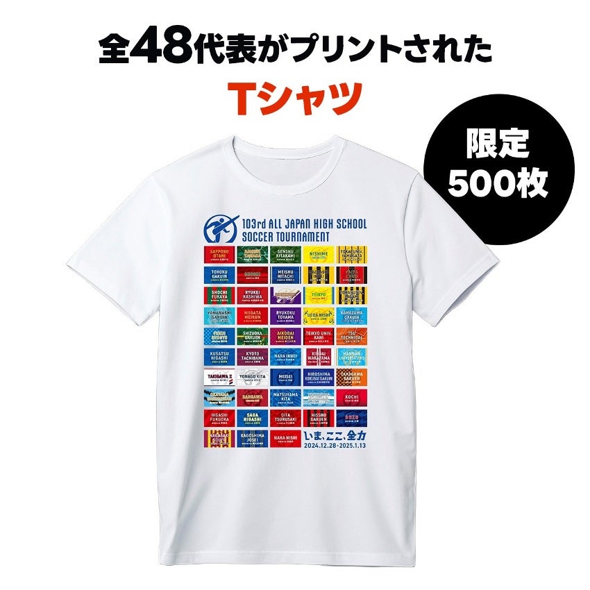 第103回全国高校サッカー選手権大会に出場する全48代表のユニフォームデザインが印刷された記念のTシャツです。