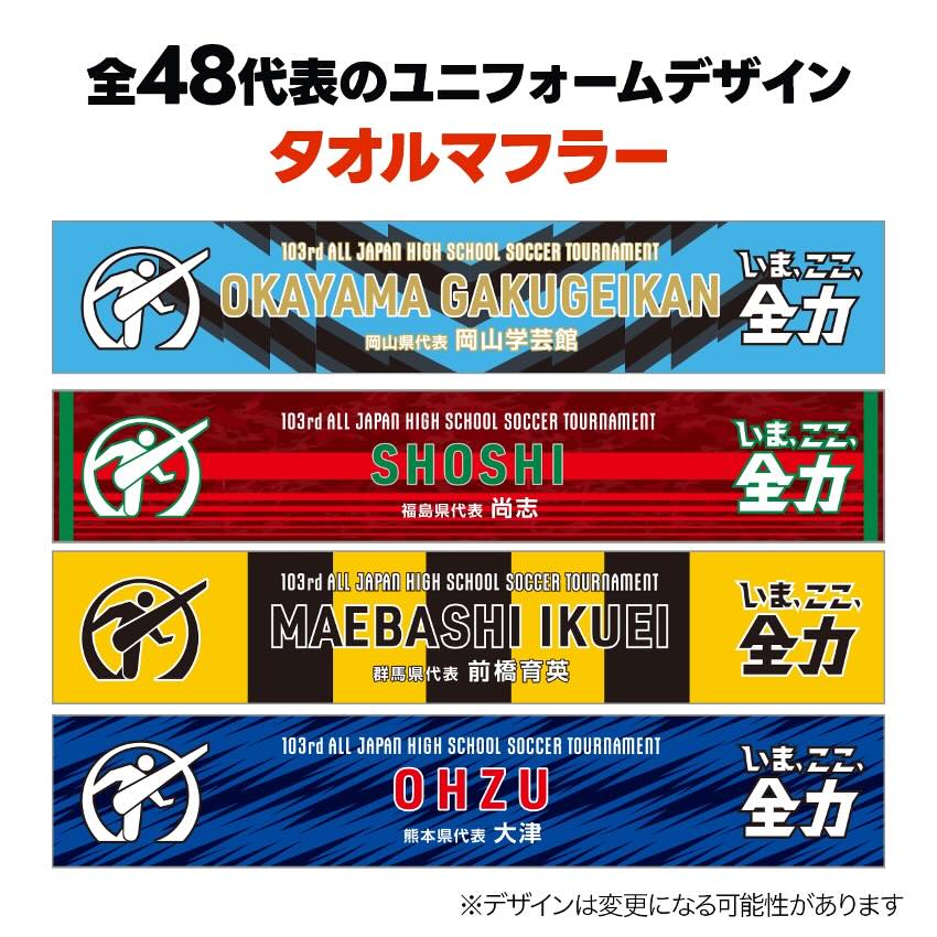 第103回全国高校サッカー選手権大会に出場する全48代表の学校名入りタオルマフラーです。