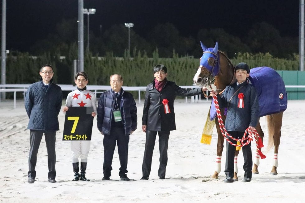 12月19日、名古屋競馬場で行われた11R・名古屋大賞典(Jpn3・3歳上・ダ2000m)は、戸崎圭太騎乗の2番人気、ミッキーファイト(牡3・美浦・田中博康)が勝利した。クビ差の2着に4番人気のノットゥルノ(牡5・栗東・音無秀孝)、3着に6番人気のシンメデージー(牡3・高知・打越勇児)が入った。勝ちタイムは2:07.4(良)。