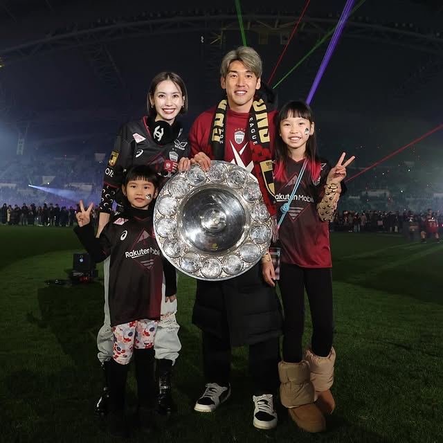 Jリーグ連覇のヴィッセル神戸・大迫勇也、美人モデル妻ら家族写真とともにシーズン終了に感謝綴る! | 話題の投稿