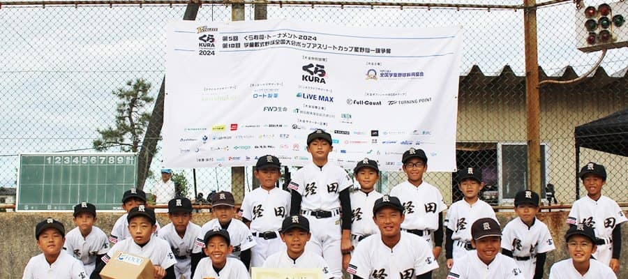 全国の約1500の学童野球チームが頂点を争う「第5回くら寿司・トーナメント2024 第18回学童軟式野球全国大会ポップアスリートカップ星野仙一旗争奪」(くら寿司トーナメントポップアスリートカップ2024、NPO法人 全国学童野球振興協会主催)は、21日、22日に東京・神宮球場でファイナルトーナメントが開催される。北信越地区代表を決めるクライマックスは、10月20日、石川・津幡町立条南小学校グラウンドで開催され、富山・経田(きょうでん)野球スポーツ少年団が全国大会への出場を決めた。