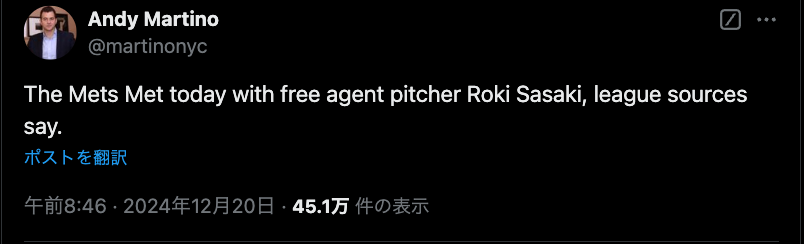 20日、佐々木朗希がメッツと会談 ソトとの契約を締結後に更なる補強か | 話題の投稿