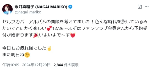 歌手の永井真理子が20日、Ⅹを更新した。【画像】あの大人気女性歌手のスカートに注目大!?アニマルコーデから目が離せない「…