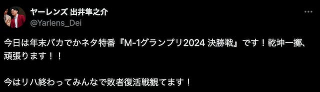 ヤーレンズ出井、M-1決勝戦直前に意気込みを語る!「乾坤一擲」 | 話題の投稿