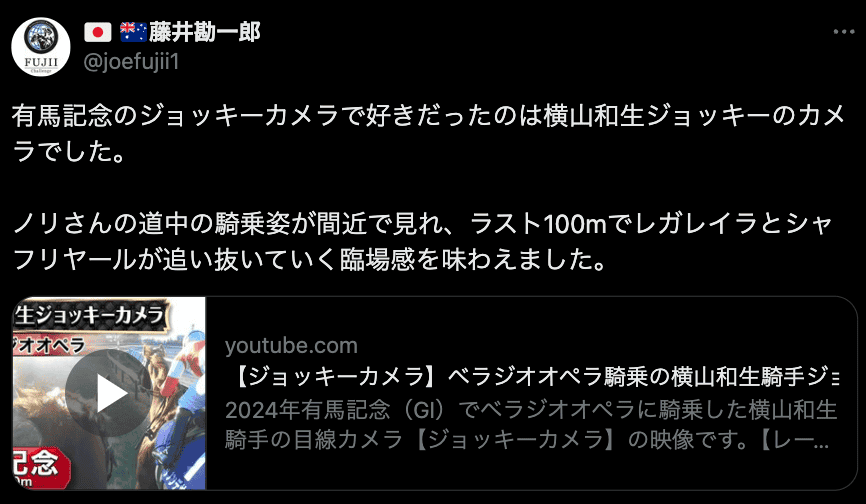 藤井元騎手が有馬記念ジョッキーカメラの視点を分析 | 話題の投稿