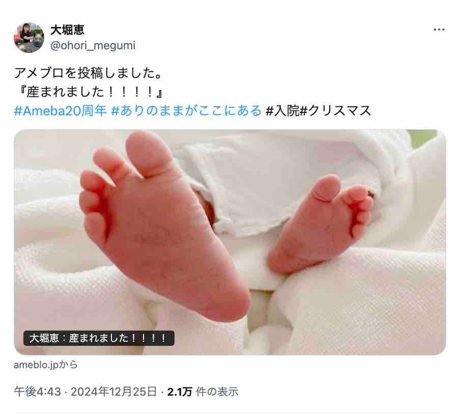 41歳の元AKBメンバーが自身のSNSで第2子出産を発表 | 話題の投稿