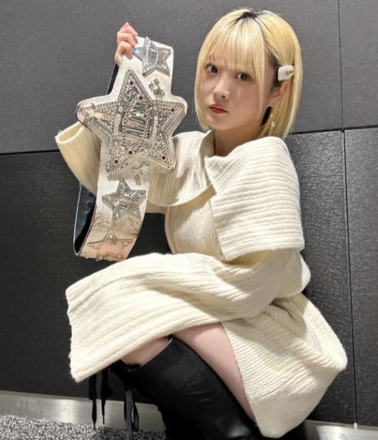 【画像】白ミニワンピで美脚全開⁉元アイドルプロレスラー・なつぽいがベルトを掲げていきたい場所は?