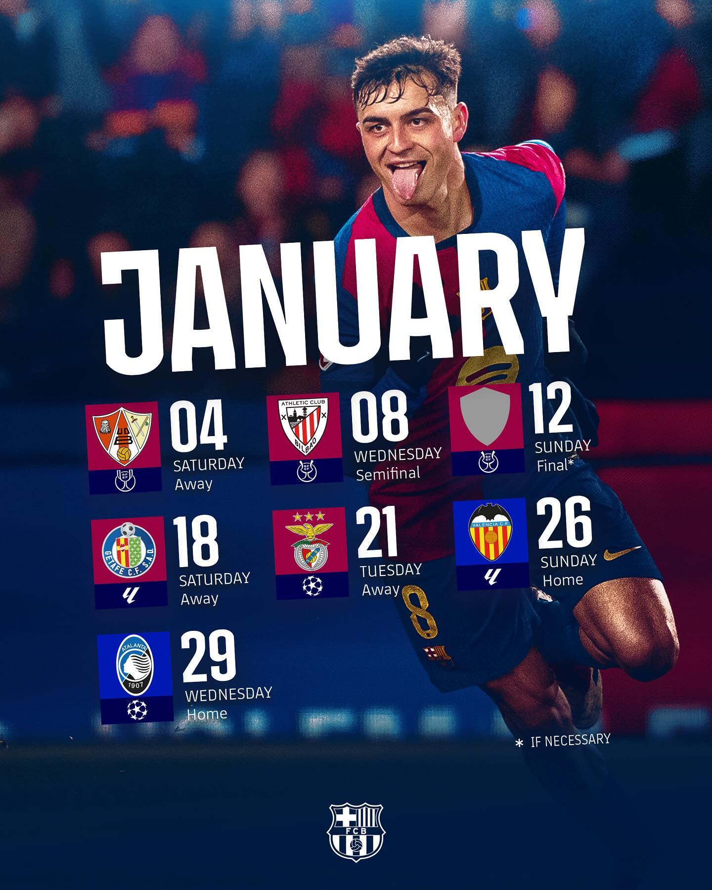 「2025初試合は明日!!」 FCバルセロナが2025年1月の試合日程を公開 | 話題の投稿