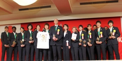 今夏のアジアカップで女子日本代表は激闘の末に優勝を果たし、アジアカップ3連覇を成し遂げた。今日、都内でその偉業を称えるための『優勝祝賀会』が開催された。日本バスケットボール協会の三屋裕子会長が「彼女たちをうんと褒めてもらいたくて今日はお時間をいただきました」と挨拶し、会はスタート。