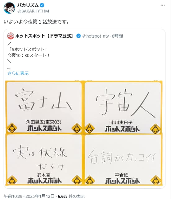 バカリズム、自身が脚本を手掛けるドラマ『ホットスポット』が今夜第1話放送。ココリコ田中や東京03角田が出演 | 話題の投稿