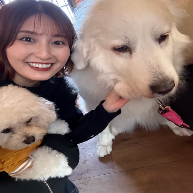 STV・久保明日香アナ、愛犬&大型犬とのスリーショットを披露!! | 話題の投稿