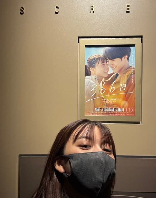 「じつはもう2回映画館に観に行った🎞️」と、自身がヒロイン役を演じた映画『366日』のポスターをバックにした自撮り写真とともに明かした。