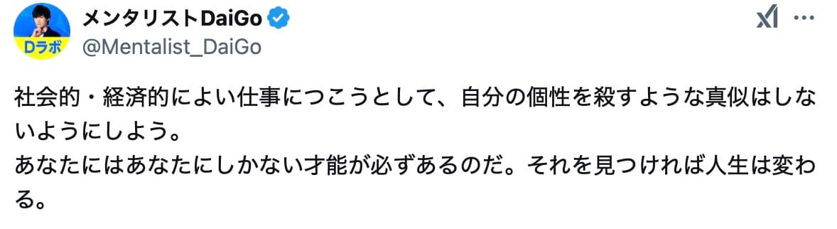 メンタリストDaiGo、個性を大切にする重要性を投稿! | 話題の投稿