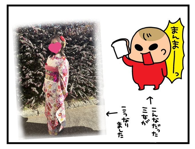 「あのまんま小僧が…」漫画家・松本ぷりっつ「うちの3姉妹」三女の晴れ着姿を公開 ファンから驚きの声が!! | 話題の投稿