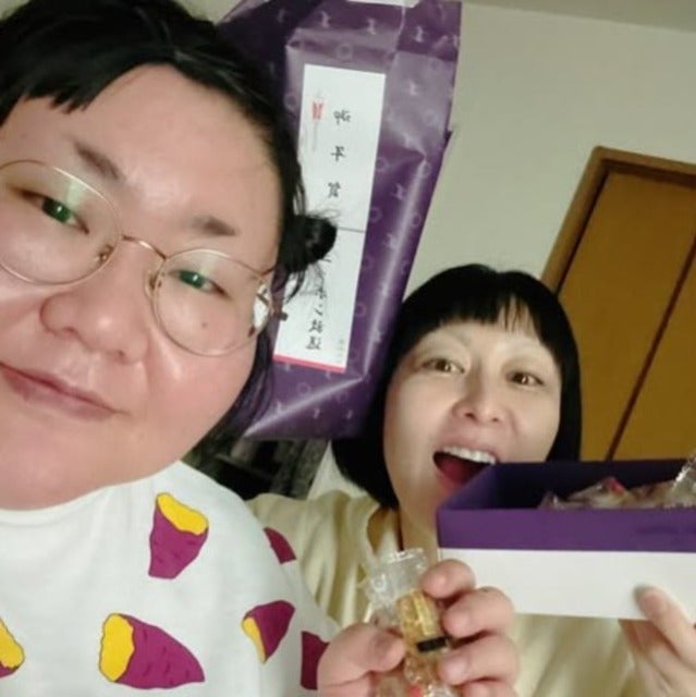 2人とも何やら楽しそうな様子でおせんべいを握りしめている。