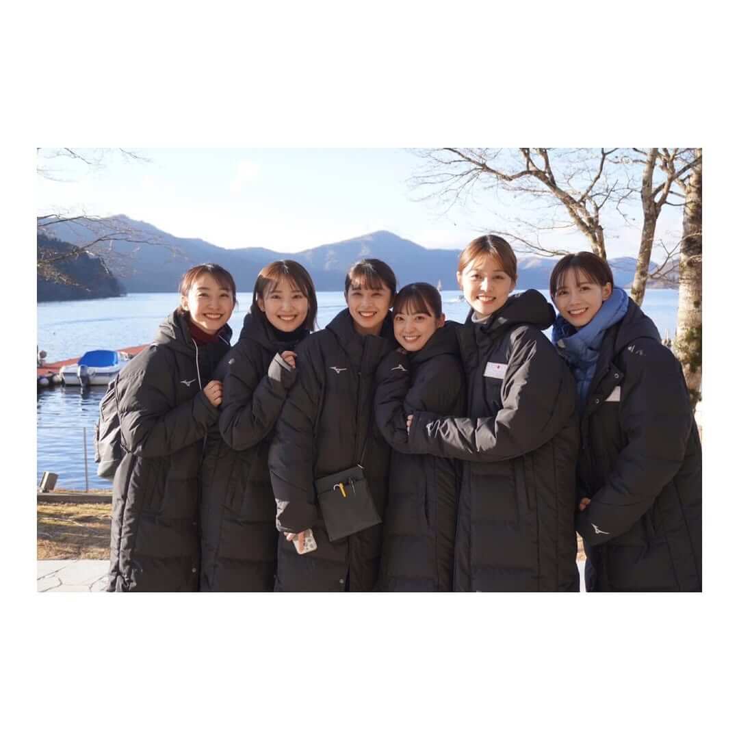 同僚の女性アナウンサーとの集合写真や往路日の朝の写真などをアップした。