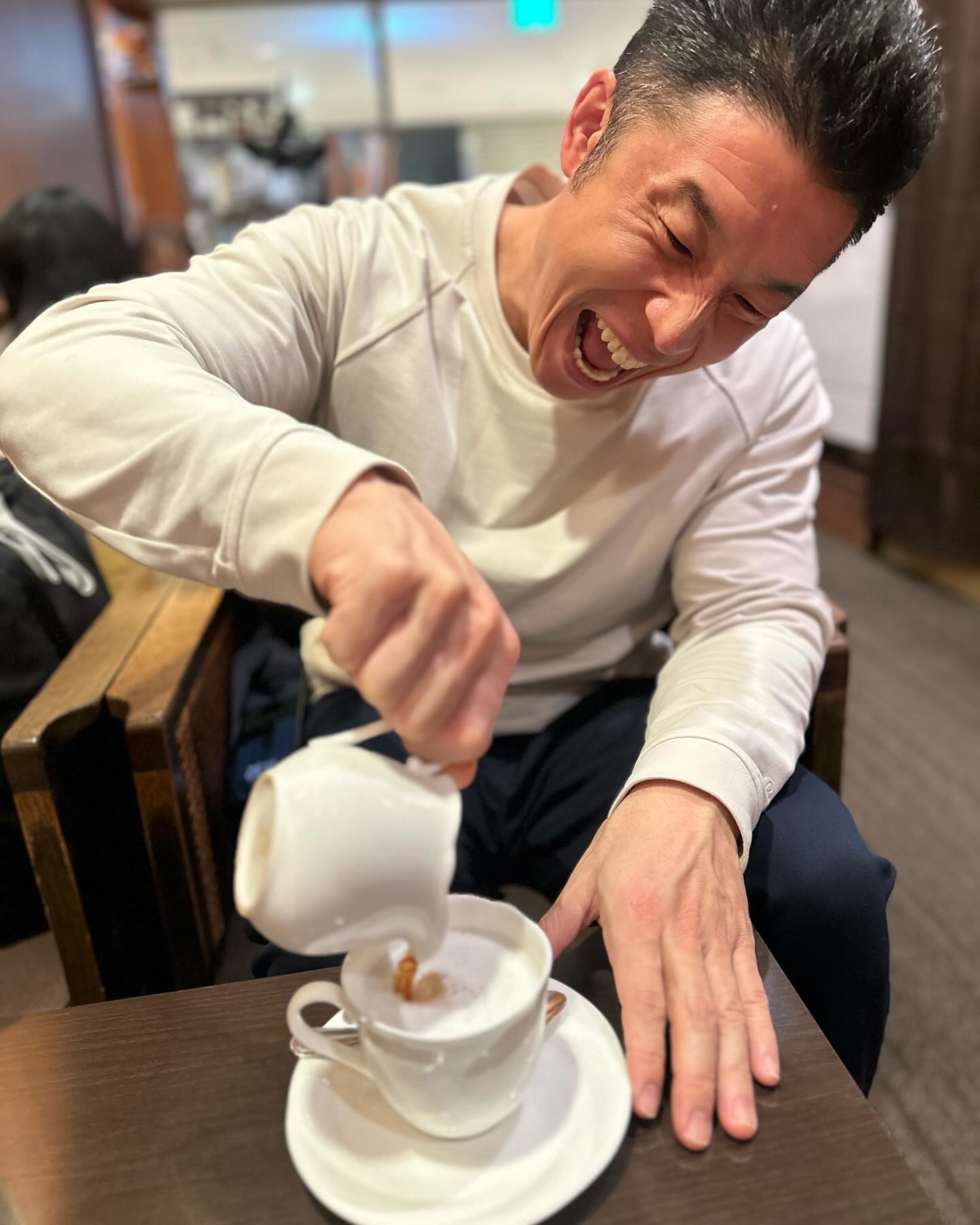 「コーヒーにミルクを入れるのではなくミルクにコーヒーを入れる #いつもと工程が違いました」と喫茶店での写真を公開した。