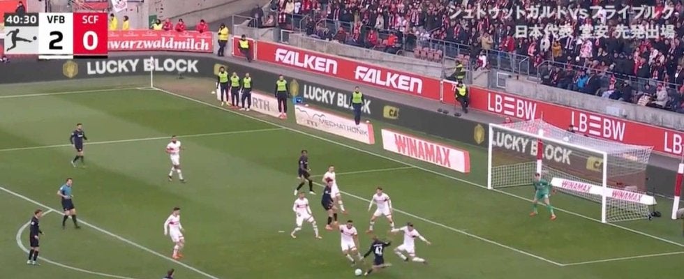 日本時間1月18日に堂安が所属するフライブルクはアウェイでシュトゥットガルトと対戦した。17分までに2点のリードを許す難しい試合展開で、4-2-3-1の右ウイングで先発出場していた日本代表MFが果敢にシュートを狙う場面があった。