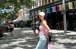 オーストラリアで過ごした年末年始の写真を公開。現地で購入したというピンクのトップス姿が印象的で、オーストラリアブランドのアイテムだと明かした。