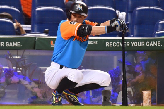 ニックネームユニフォームを身に着けるマーリンズ・イチロー【写真:Getty Images】