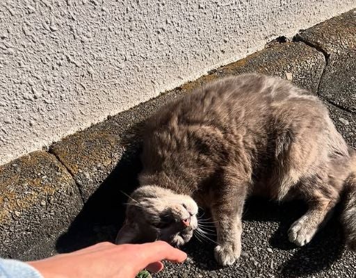 道端で寝転ぶなじみのネコとじゃれる、長瀬のほっこりショットにファンの注目が集まっている。