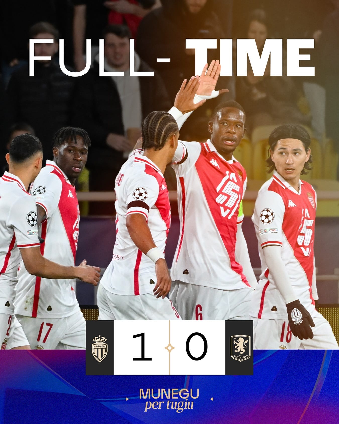 「𝗩𝗜𝗖𝗧𝗢𝗜𝗥𝗘 😍🔚L’AS Monaco s’impose à domicile face à @avfcofficial 🔥🔥🔥Nos Rouge & Blanc comptent 13 points avant la dernière journée de @championsleague 🔝」と綴り、1枚の写真をアップ。