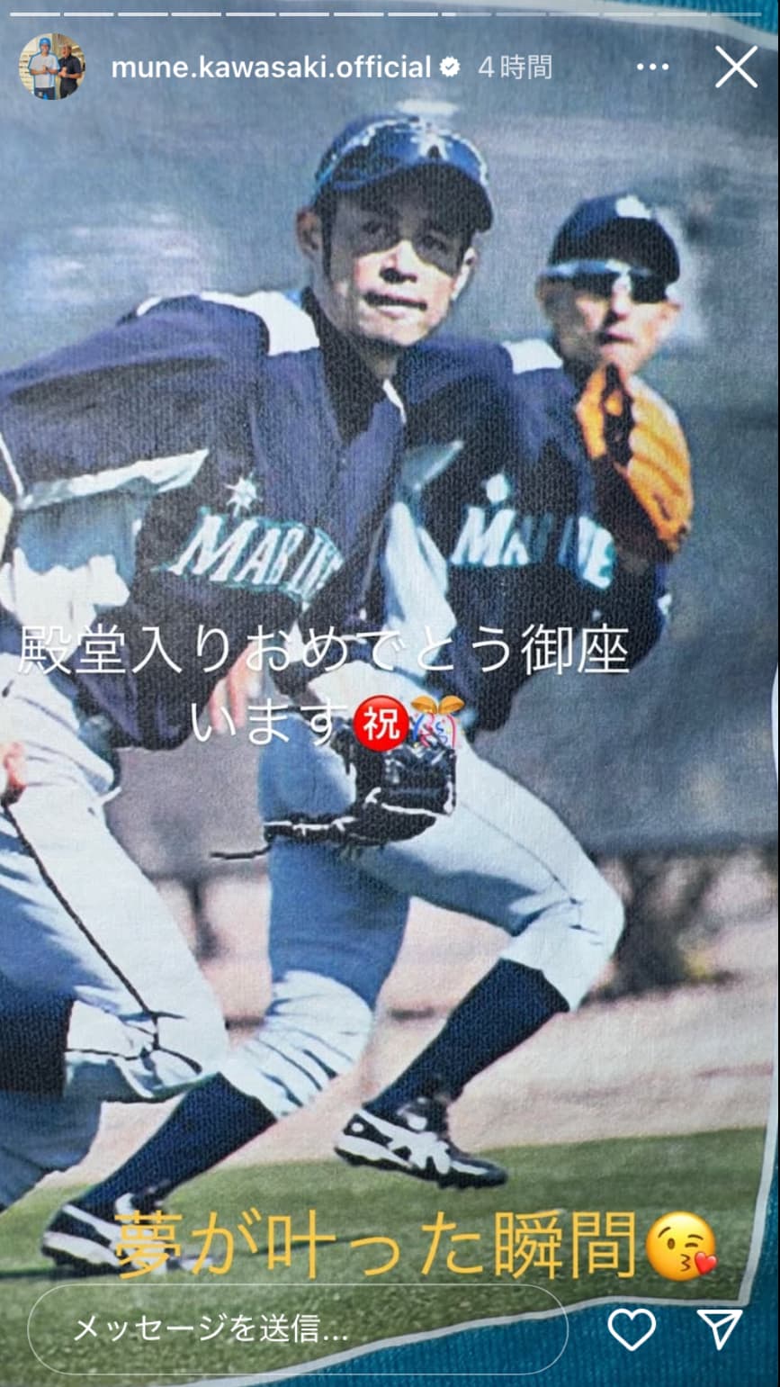 川崎宗則が22日、自身のインスタグラムのストーリーを更新した。【画像】イチローが日本人初の殿堂入り!MLBが歴史的快挙を…