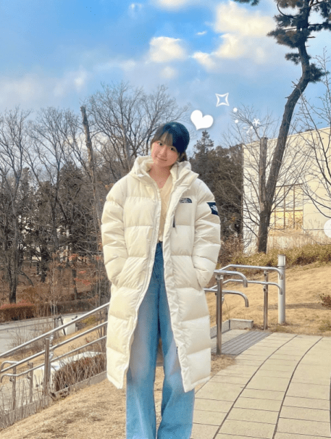 白のモコモコロングダウンコートを羽織り、にっこり笑顔の西川が可愛すぎると話題になっている。