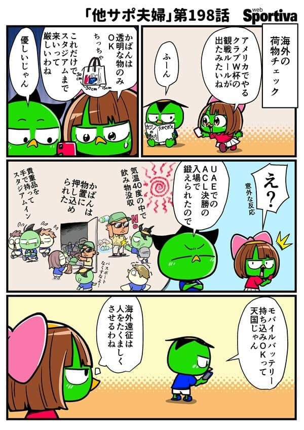 他サポ夫婦がクラブW杯の観戦準備をしているようです。海外の荷物チェックは厳しいようですが......。