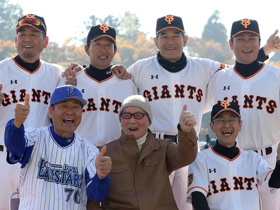 2016年の少年野球教室での一枚。後列の左から2番目が篠塚和典、3番目が定岡正二