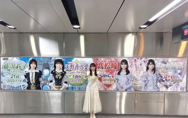 同じ事務所の後輩の≒JOY・藤沢莉子、天野香乃愛と髙松と同グループの佐々木舞香の4人が1月生まれということで、駅には4人連続の生誕ポスターが掲載された。