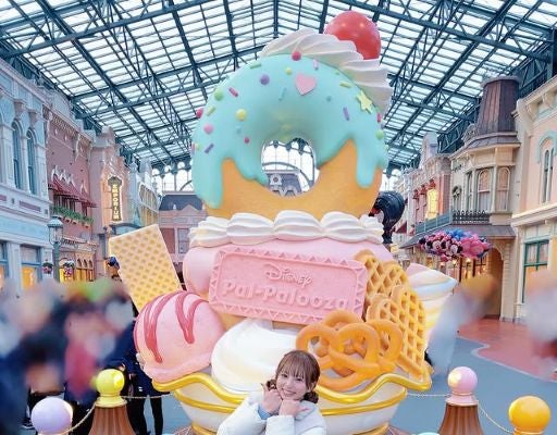 ワールドバザール中央エリアのお菓子のモニュメント前で、あざとカワイイポーズで写った林が可愛すぎると話題になっている。