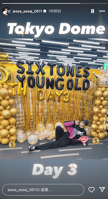 SixTONESのジェシーが26日、自身のインスタグラムを更新。