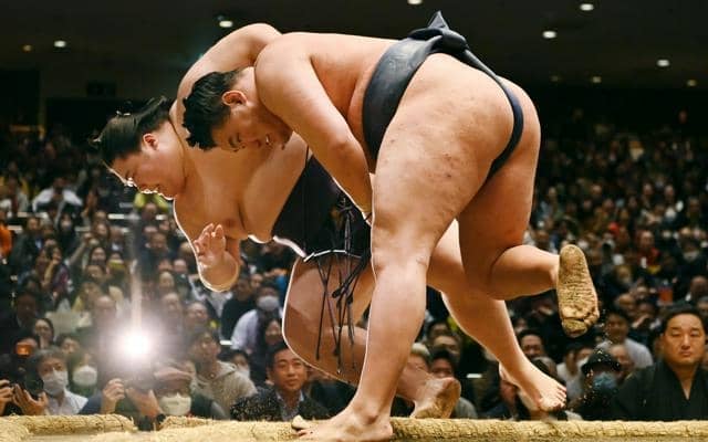 豊昇龍はこの日、本割で琴桜との大関対決に勝って、3敗をキープ。12勝で並んだ平幕金峰山、王鵬との優勝決定ともえ戦を制した。
