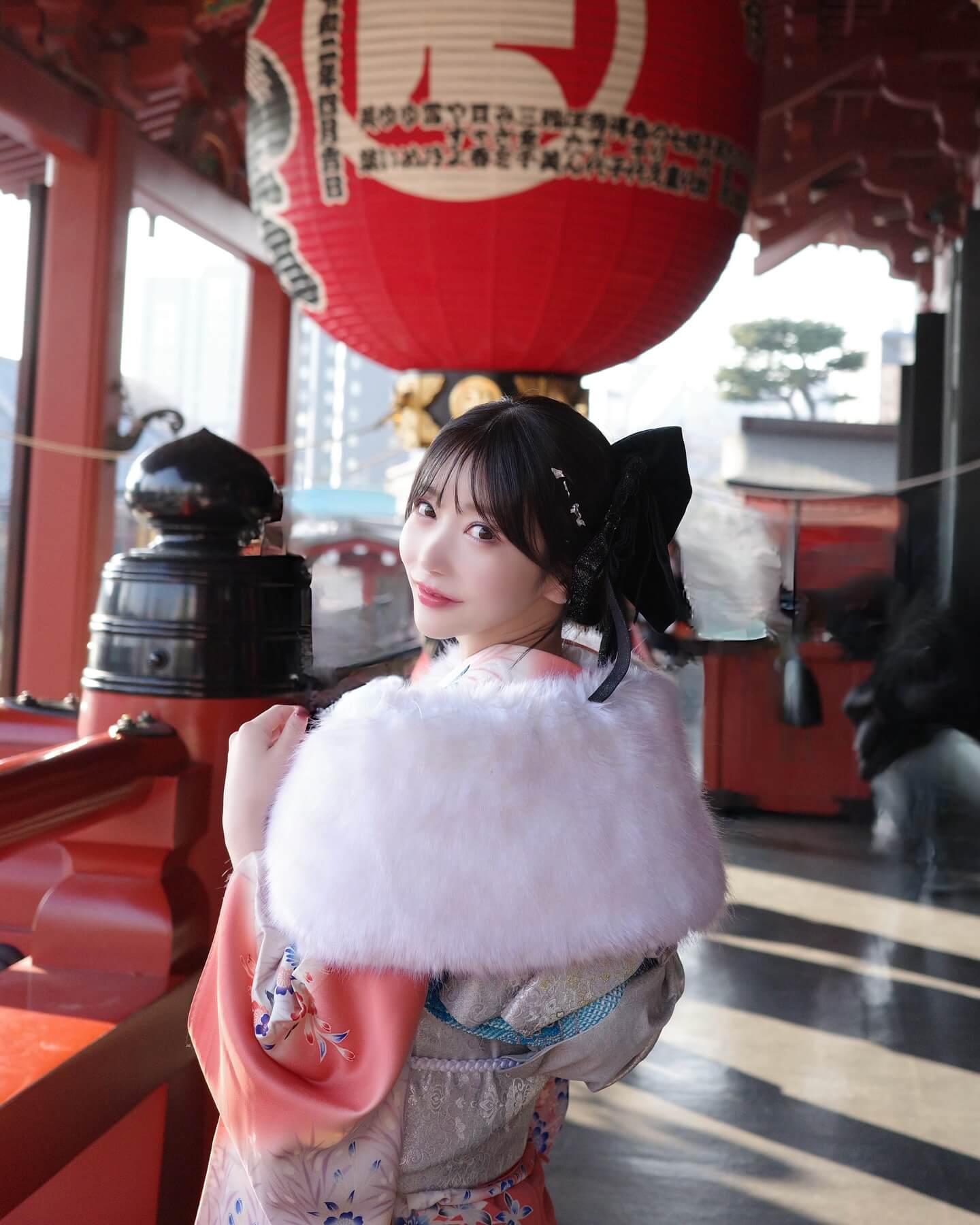 「悠亜さんと振袖着て浅草行ってきた💖😌」と綴り、最新ショットを公開。