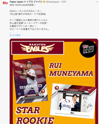 東北楽天ゴールデンイーグルスにドラフト1位で入団が決まった大注目の大物ルーキー宗山塁選手がNPBカードで初登場することが決まった。