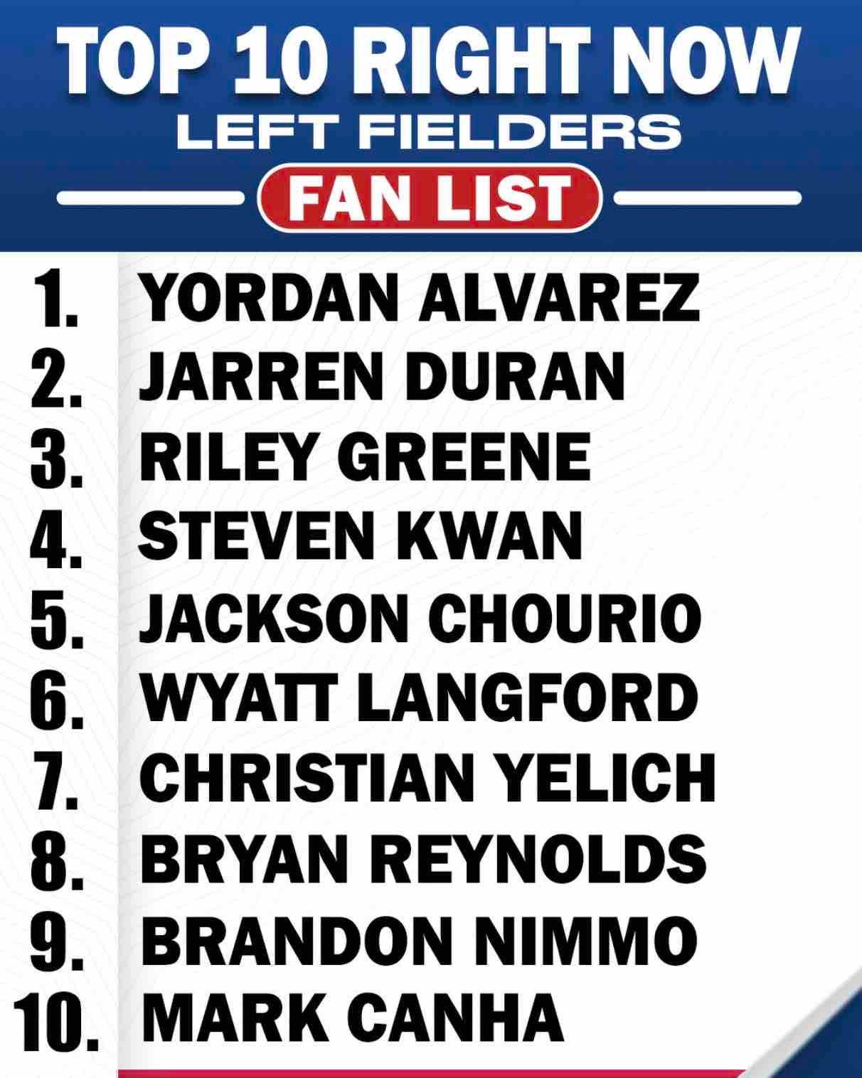 現在のMLB左翼手ランキング 人気MLB専門チャンネルが発表 | 話題の投稿
