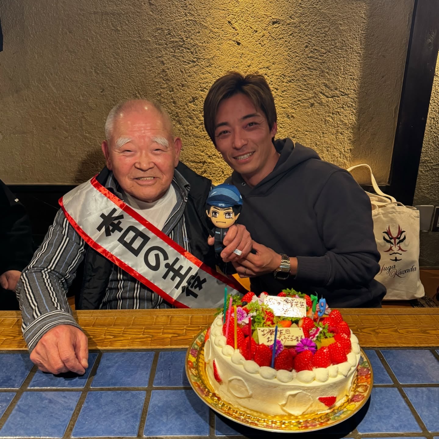 「松田先生の誕生日会。僕の人形をプレゼントしました。」と綴り、恩師・松田博資先生との2ショットをアップした。