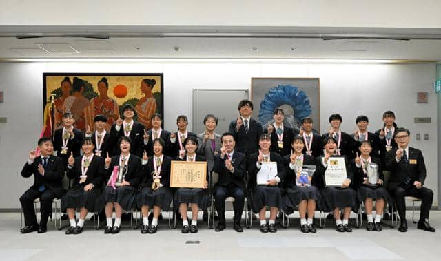 マネジャーも含め部員は86人。中村翔監督は「お互いが個の良さをひき立て合うことができる、組織力の高いチームだった」と話した。鈴木知事は「チームとして勝利を積み重ね、選手のみなさんには世界で活躍する選手に成長してほしい」とエールを送った。(斉藤智子)